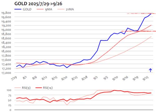 2025年9月26日の国内、金価格は前日比+127円、プラチナ価格は前日比+377円となりました。国内金価格は年初来高値を更新しました。国内プラチナ価格は年初来高値を更新しました。 国内金価格推移 2025年9月26日 過去31日の高値:19,749(9/26) 安値:17,221(8/20…